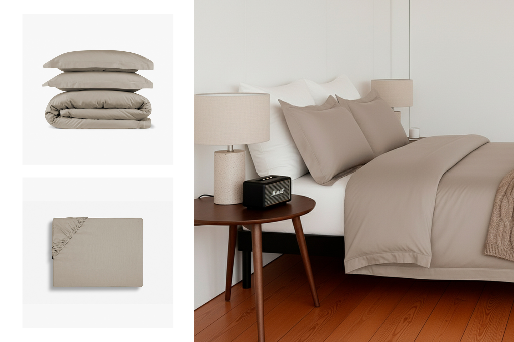 Vi presenterar en drömpalett för kollektionen Percale 400 Trådar. De nya tonerna Pale Blue och Latte för med sig lugn och sofistikation till sovrummet, utan att ge avkall på den komfort och kvalitet som definierar våra produkter. Dessa mjuka färger kombinerar en matt finish med Percales unika fräschör och erbjuder en verkligt lyxig sömnupplevelse.